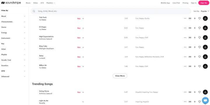 一个国外的免费音乐网站,提供的音乐风格超级丰富,打开页面就可以看到很多单首歌曲推荐,每首歌曲有不同的标签音乐风格标签。
