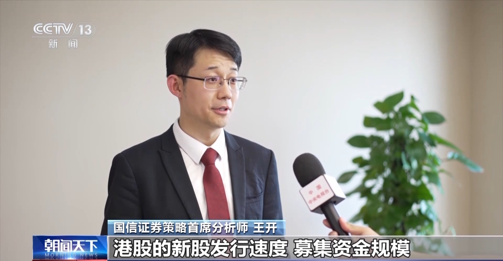 国信证券策略首席分析师 王开:一季度,港股的新股发行速度、募集资金规模,同比快速增长,在全球范围内也位居前列。以消费和新能源、人工智能为代表的新质生产力领域企业集中赴港上市,让越来越多投资者看好港股上市公司的未来发展,认可港股的投资价值,这也会不断巩固提升香港国际金融中心的地位。