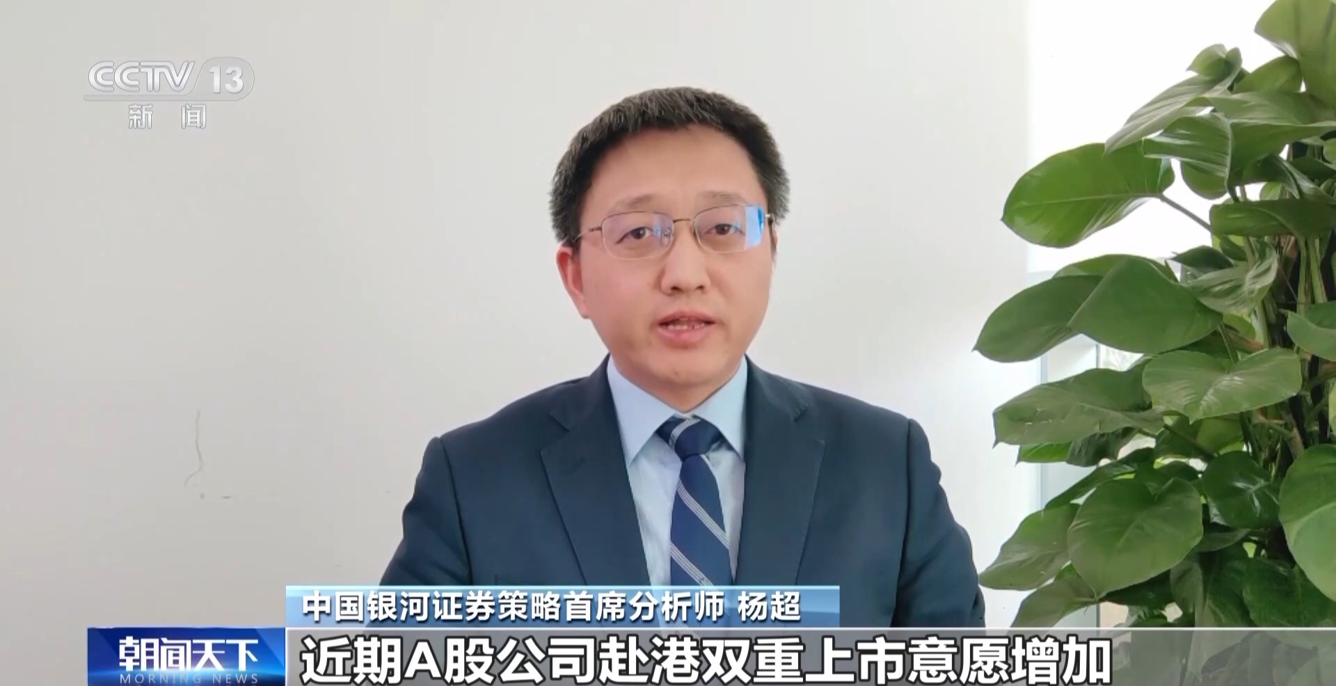 中国银河证券策略首席分析师 杨超:近期A股公司赴港双重上市意愿增加,它们很多都是在A股具有吸引力的行业龙头,在香港上市能够加速企业的全球化业务布局,助力它们拓展国际市场。而且企业在两地上市,能够利用两个市场两种资源,更便捷进行融资,加快企业成长速度。同时,更多国际投资者也能有机会分享中国经济发展的成果。