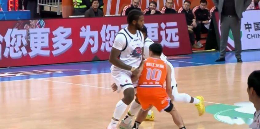 让福建队瞬间陷入被动的,正是他们的后卫黎伊扬。那场比赛的第一个爆点,来得猝不及防,甚至有点让人哭笑不得。首节比赛还剩最后59秒,福建外教凯撒把黎伊扬换上场。谁都没想到,这成了他本场仅有的亮相时间。山东队执行第一节最后一攻,外援克里斯上前给队友鲍威尔做掩护,结结实实地挡住了追防的黎伊扬。鲍威尔获得了出手空间,但就在同一时间,身高马大的克里斯却“砰”地一声倒在地上,表情痛苦。放倒他的,正是矮了他将近30公分的黎伊扬。
