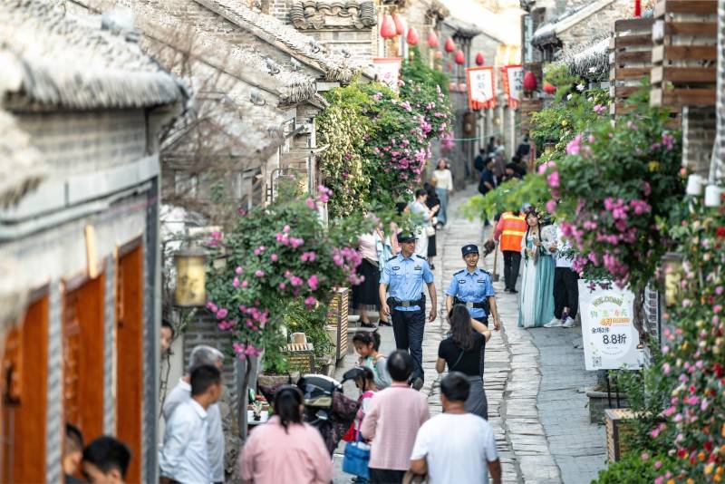 “10时左右,大量游客将集中抵达,瞬时客流可能超负荷!”2025年10月1日上午9时30分,河下古镇花巷区域人流密度骤增,系统自动触发警报,指挥部立即启动预案,调度20名警力在古镇入口实施“潮汐分流”,预警指令同步秒级推送到执勤民警李冬冬的警务通。李冬冬带着2名辅警迅速抵达,通过扩音器引导游客沿估衣巷分流,仅5分钟便化解了拥堵风险,“刚担心怎么进去,转头就看到民警在指引,老好了!”上海游客李女士感慨道。