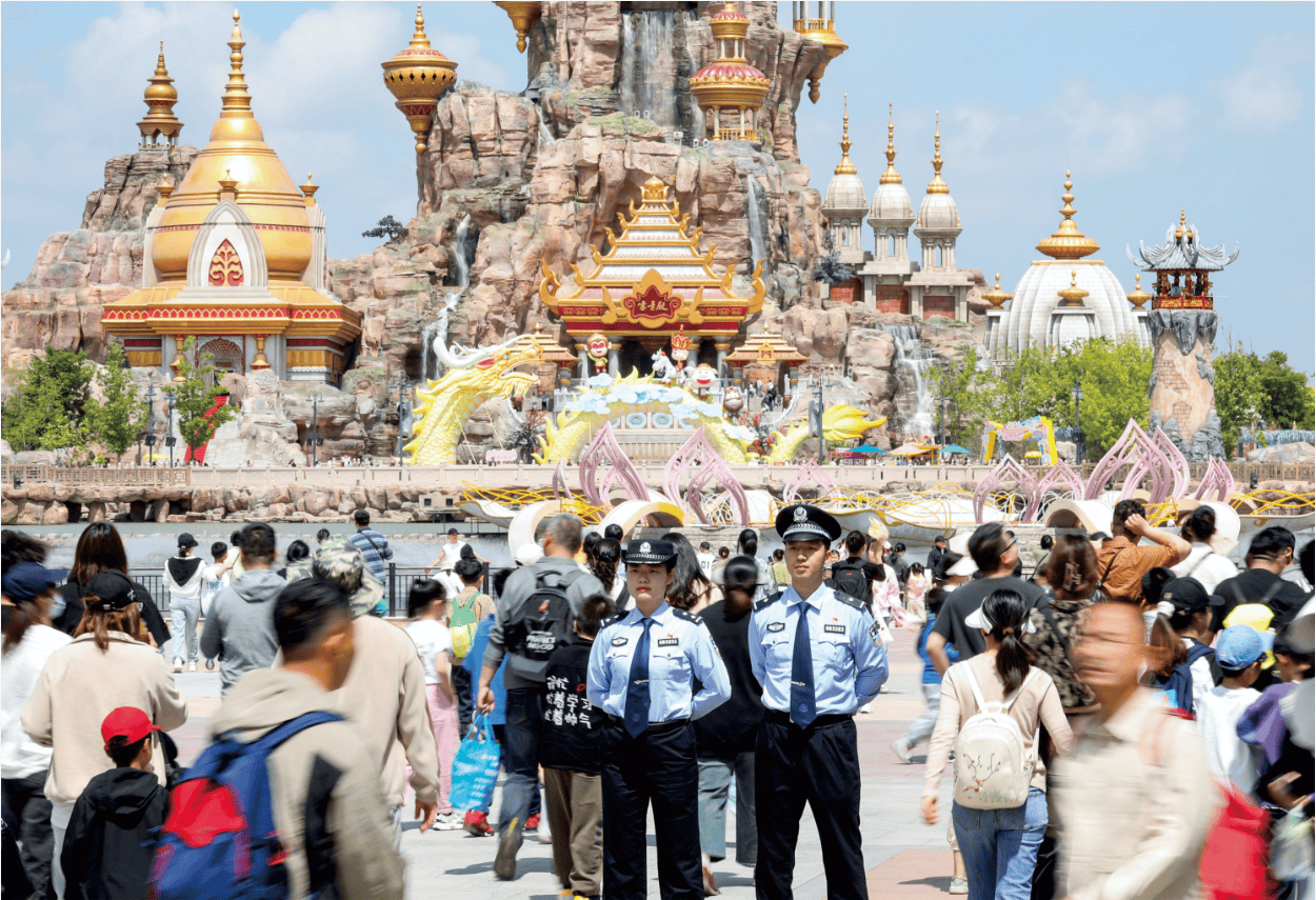 “数智”监管,安全防线年“五一”假期,西游乐园单日客流达7.2万人次。5月2日下午2时许,正在巡查的无人机发现“佛法无边”项目排队区一名游客突然晕倒,画面实时传至指挥部,系统同步推送给最近的巡逻民警。“收到指令,1分钟内抵达!”民警倪珂携带急救包疾步赶到,仅用2分钟完成初步处置。