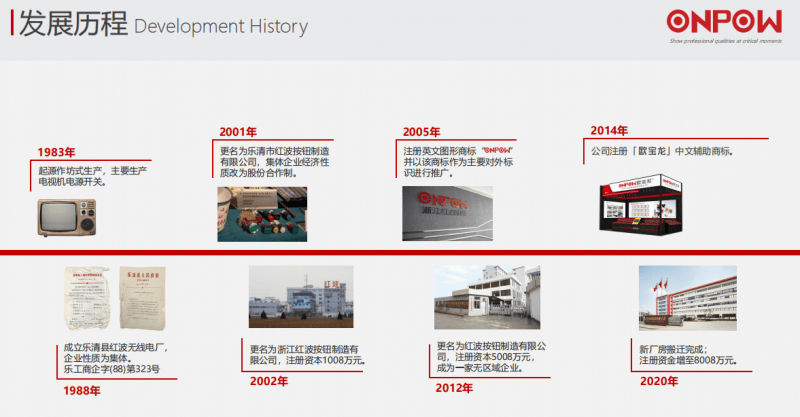 2005年,英文商标ONPOW成功注册并作为主要对外标识推广,同步拿下德国VDE、美国UL、日本PSE等多项国际认证,为全球化布局铺平道路。2012年,企业升级为无区域企业红波按钮制造有限公司,注册资本跃升至 5008 万元,凭借专业专注的发展路径,成为柳市镇百强企业中唯一的按钮开关专业制造商。