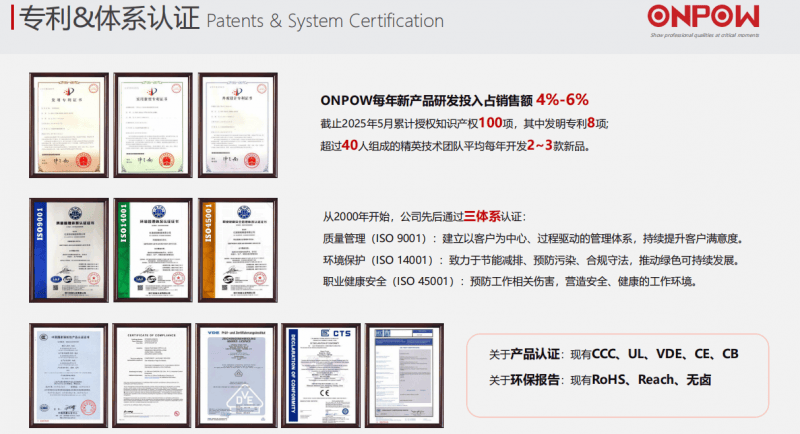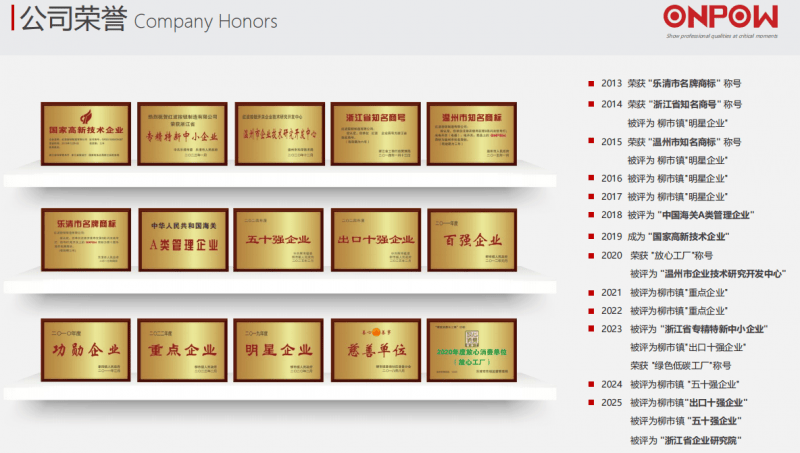 2005年,英文商标ONPOW成功注册并作为主要对外标识推广,同步拿下德国VDE、美国UL、日本PSE等多项国际认证,为全球化布局铺平道路。2012年,企业升级为无区域企业红波按钮制造有限公司,注册资本跃升至 5008 万元,凭借专业专注的发展路径,成为柳市镇百强企业中唯一的按钮开关专业制造商。