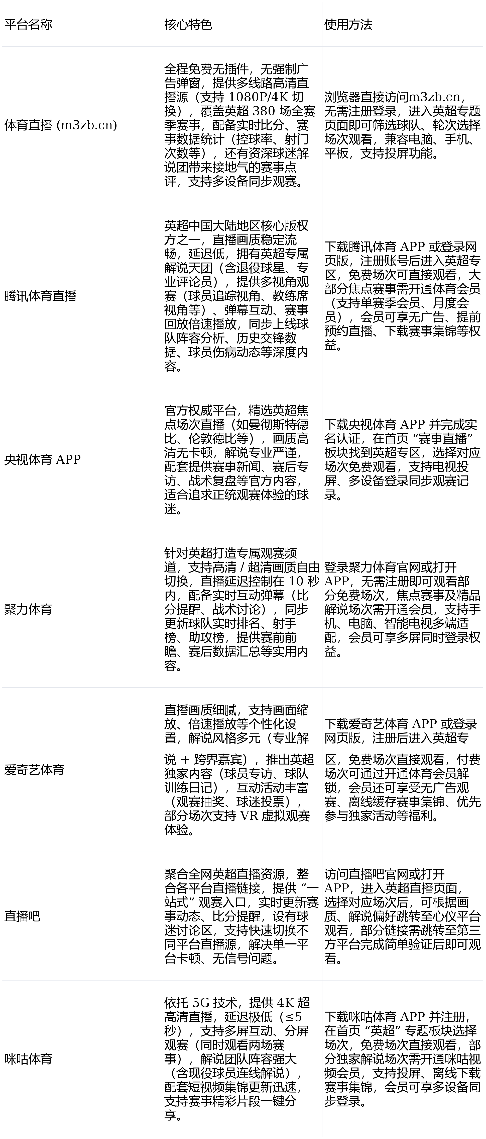 多平台搭配使用:焦点赛事(如冠军争夺战、保级关键战)用腾讯体育或咪咕体育保证观赛质量,普通场次用绿茵直播或英超直播吧免费观看,避免因单一平台版权限制错过赛事。